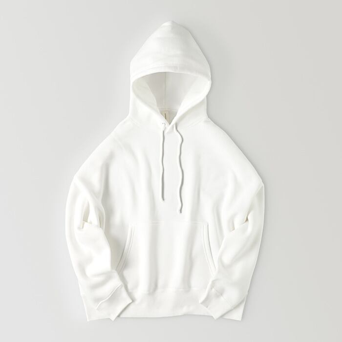 広めの身幅とドロップショルダーで、ゆったりとしたシルエットのプルオーバーパーカーです。